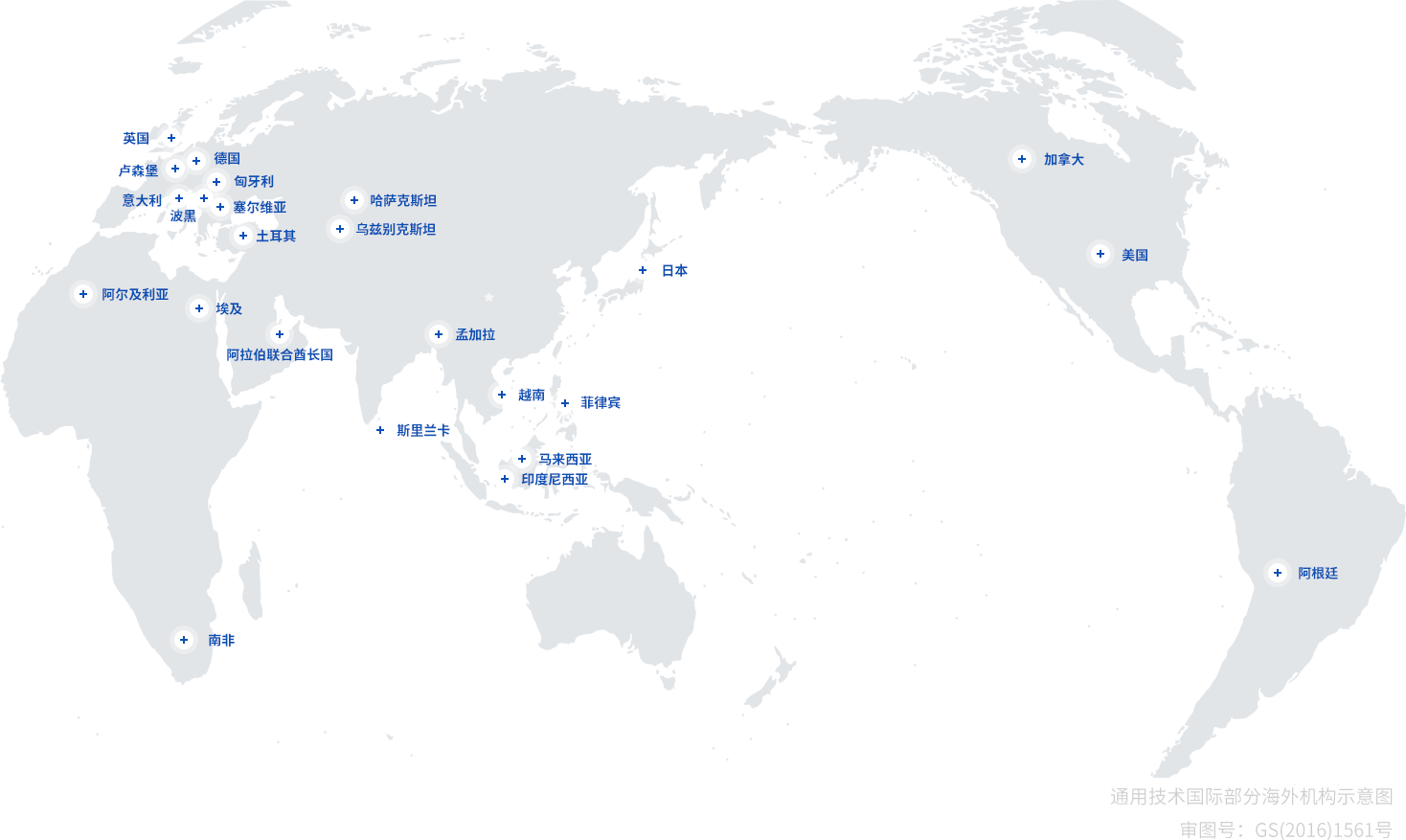 國際通用 通用技術國際致力于服務全球市場,在世界范圍內廣泛尋求合作,構建了覆蓋面廣、反應迅速的國際市場經營網絡,公司業(yè)務遍布五大洲的100多個國家和地區。